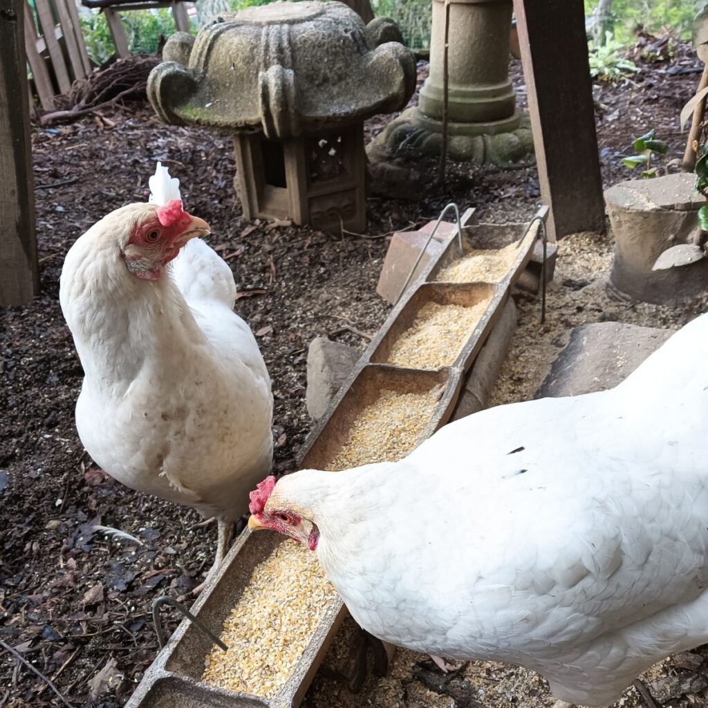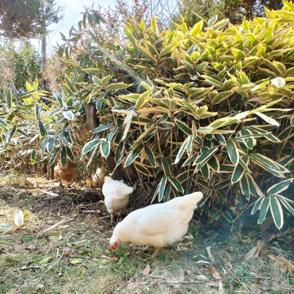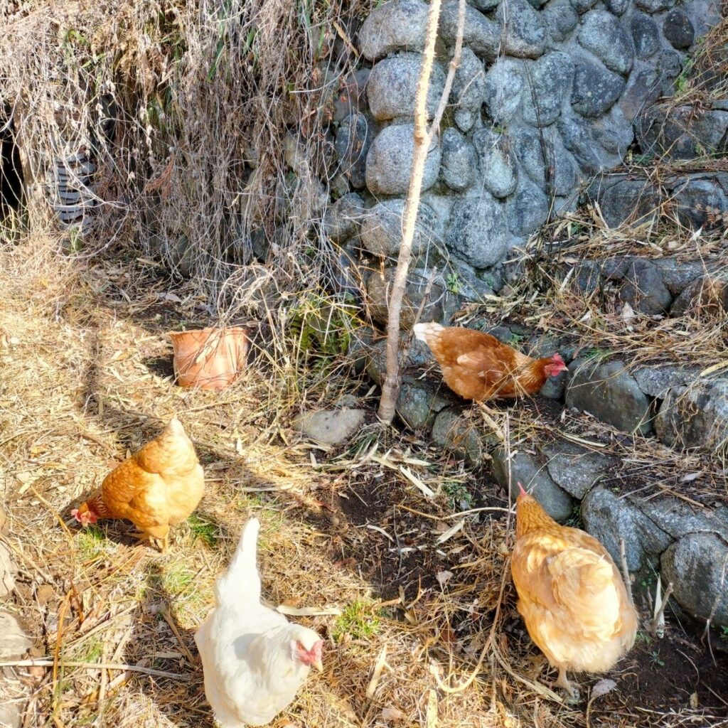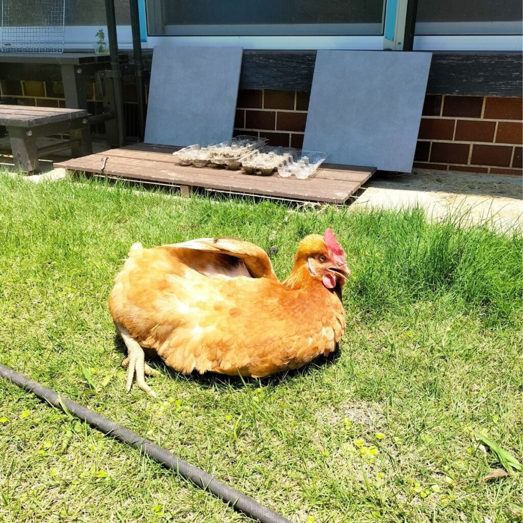 天気の良い日は外に出て、雑草をついばんだり、虫探しに夢中になったり。 疲れたら日向ぼっこや砂浴びでのんびり過ごします。 外に出たときの鶏たちは、本当にいきいきとした表情になります。 (むしろ出さないと、「小屋から出して〜」という圧を感じるほどです)