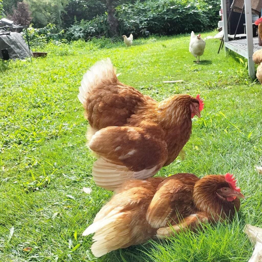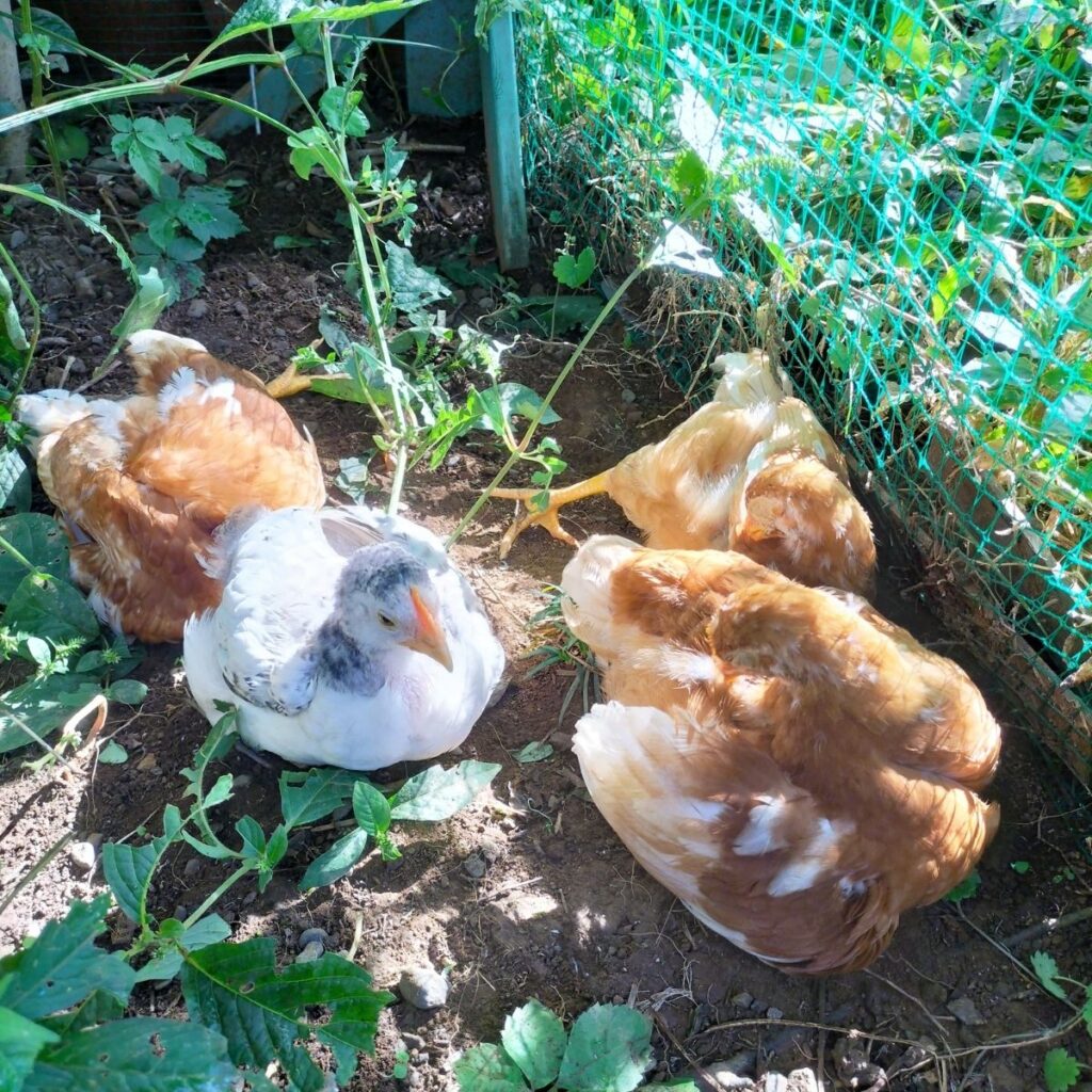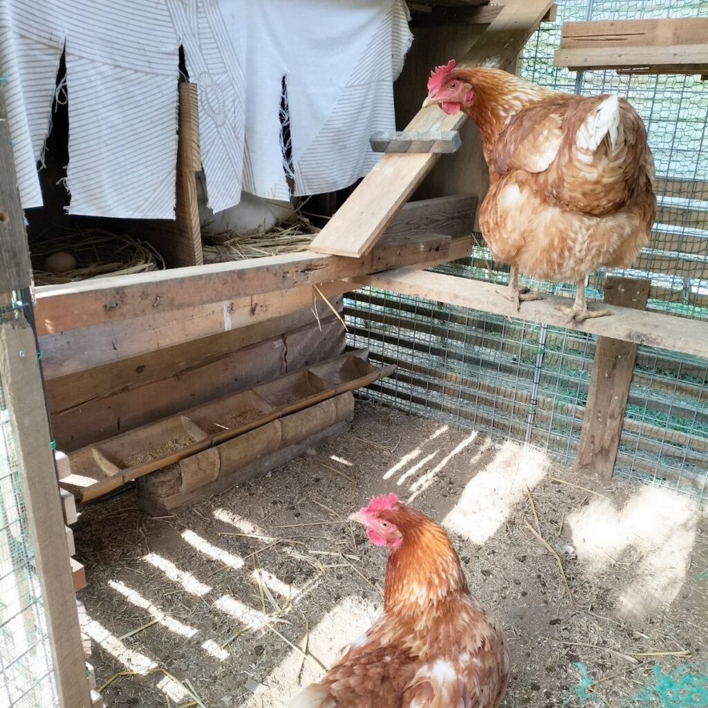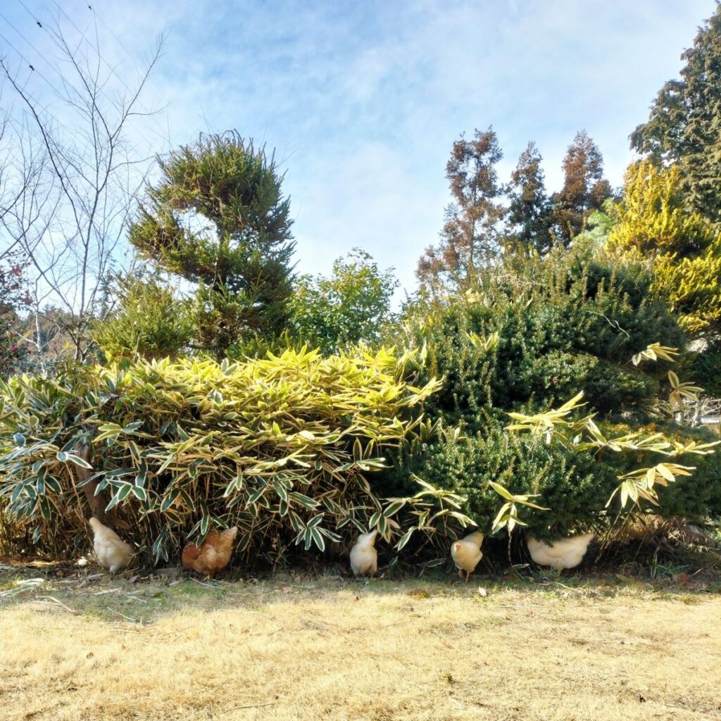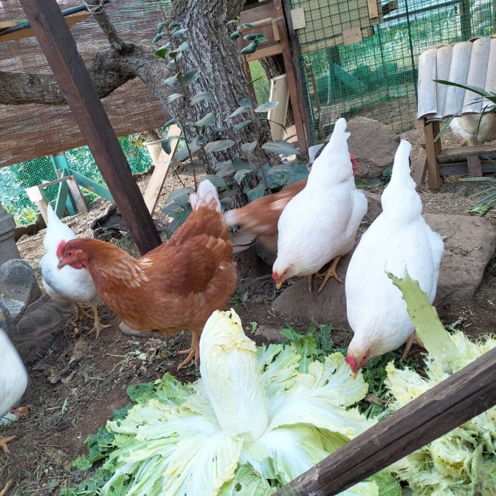 天気の良い日は外に出て、雑草をついばんだり、虫探しに夢中になったり。 疲れたら日向ぼっこや砂浴びでのんびり過ごします。 外に出たときの鶏たちは、本当にいきいきとした表情になります。 (むしろ出さないと、「小屋から出して〜」という圧を感じるほどです)