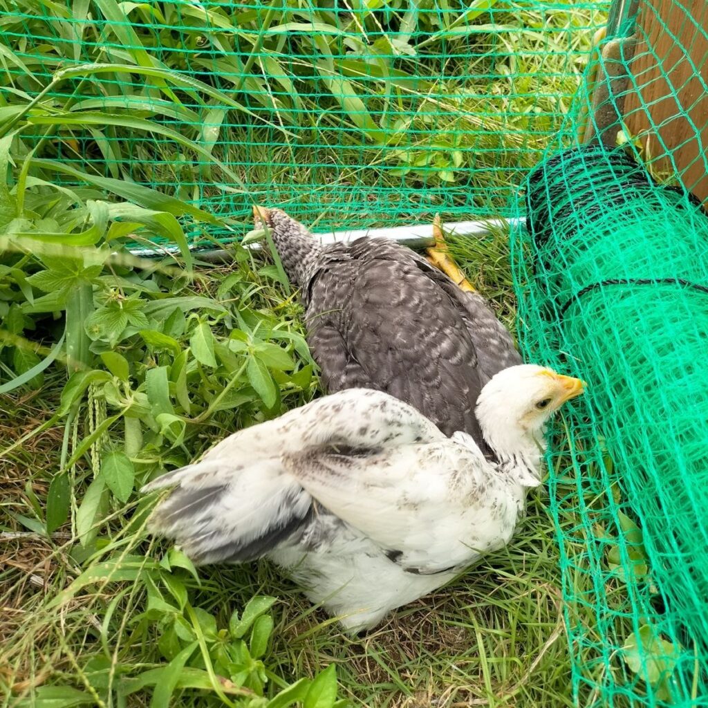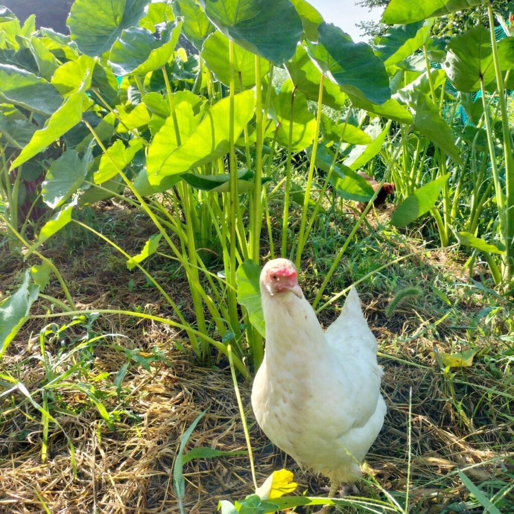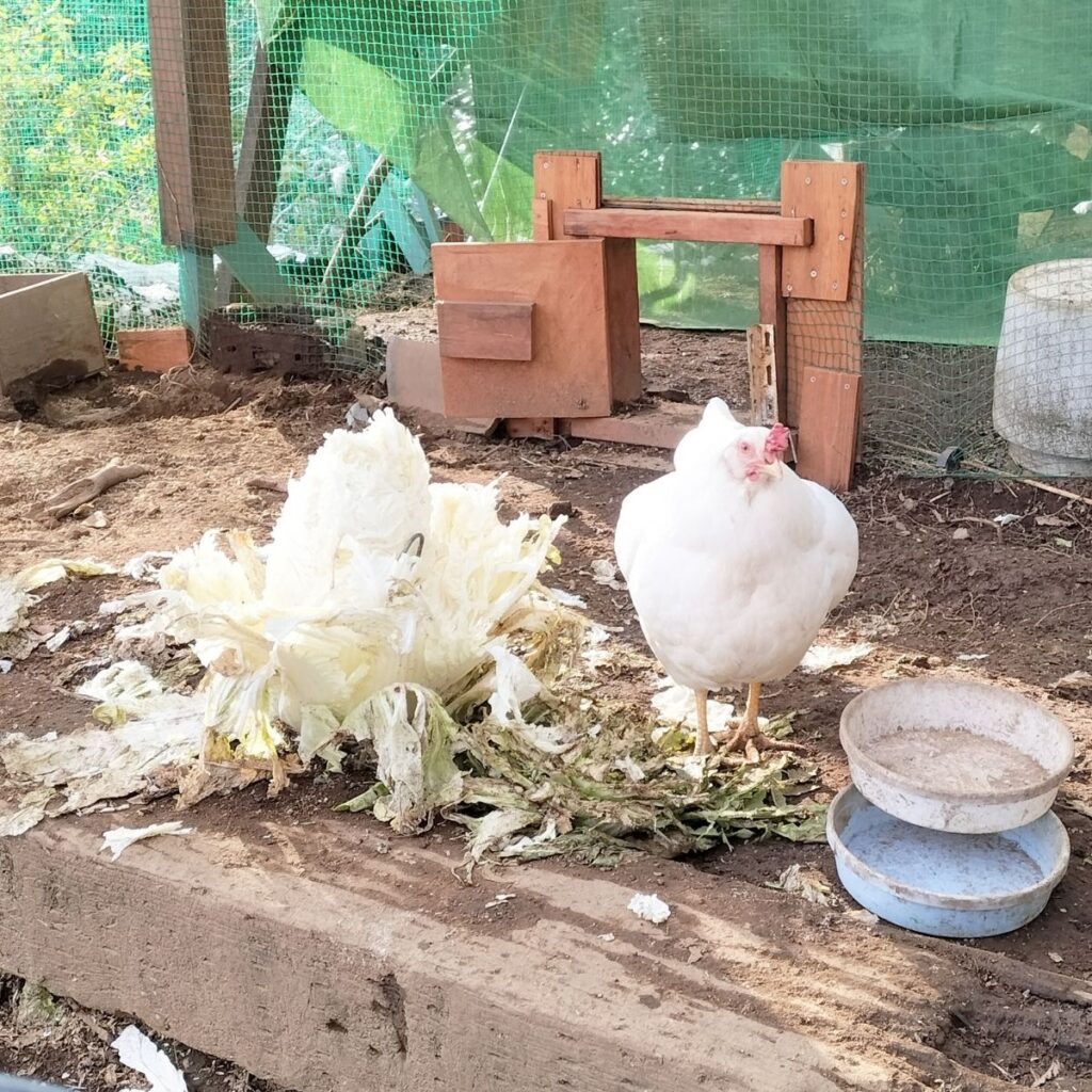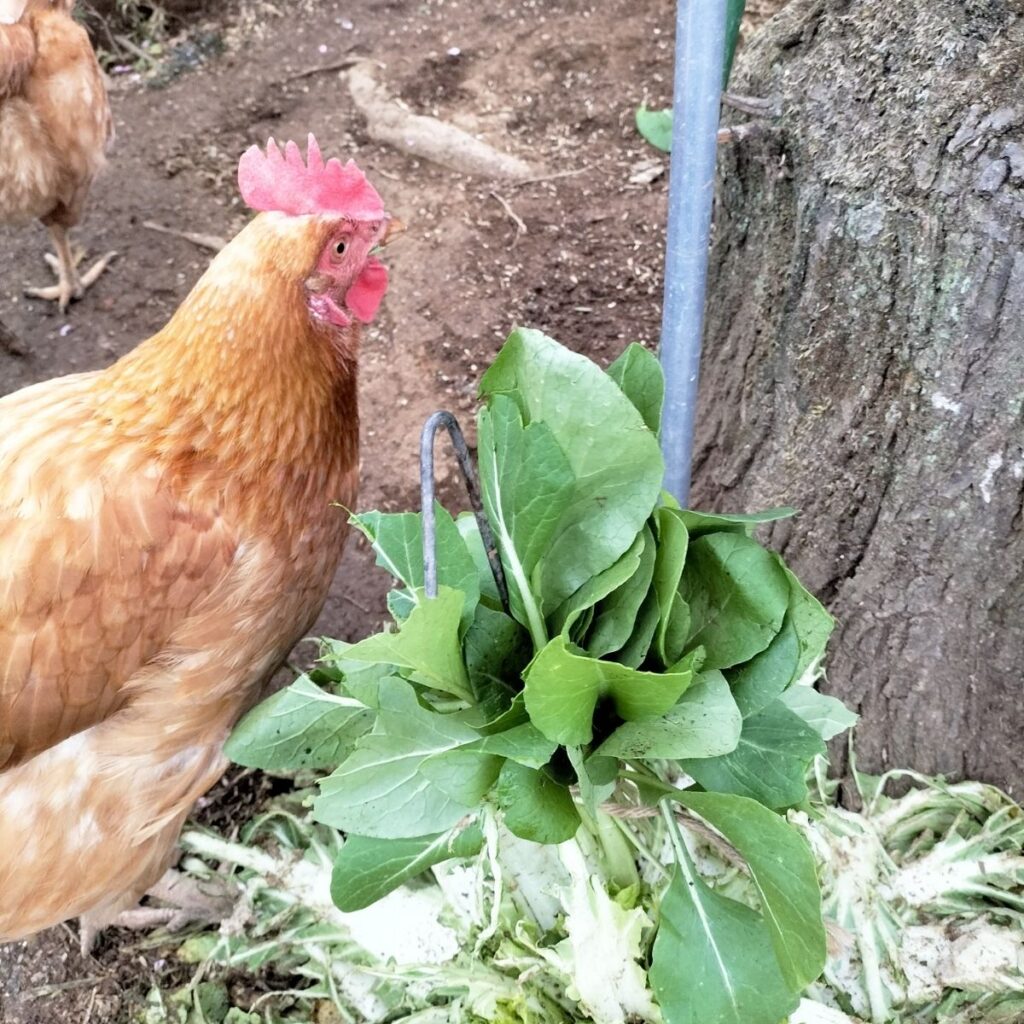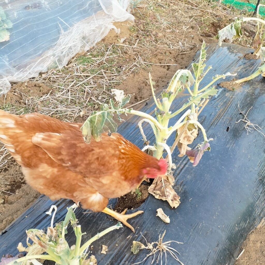 ブロッコリー収穫後、葉っぱは鶏たちが美味しくいただきました。