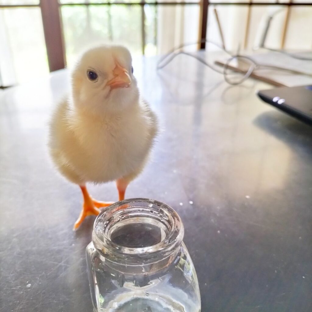 おいちは美人だね~とメスとして育てたひよこ時代。今は立派なオスに成長しました。