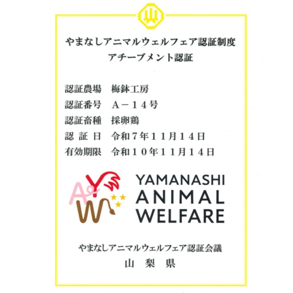動物福祉に配慮した飼育を行っている証として、アニマルウェルフェア認証(星3つ)を取得しています。