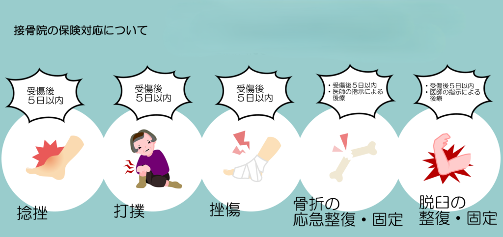 ※保険の適用範囲は、症状や受傷状況によって異なります。